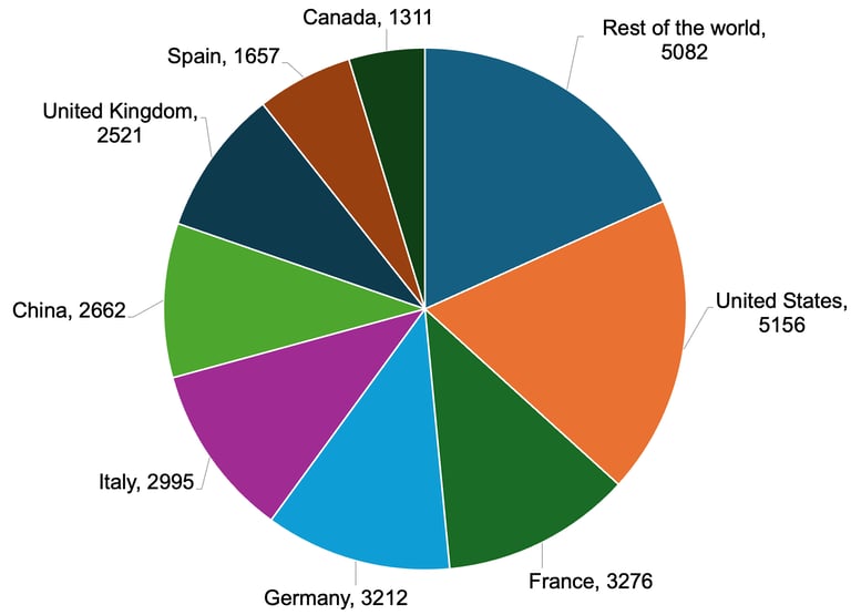 The graph shows the historical global case numbers of prion diseases over a 27 year period (1993-2020). These historical numbers significantly under-represent the real numbers due to a lack of diagnostic tools and established surveillance programs. The relatively small diagnoses of prion diseases in countries with large populations like China indicate the lack of diagnostic competencies in these countries.